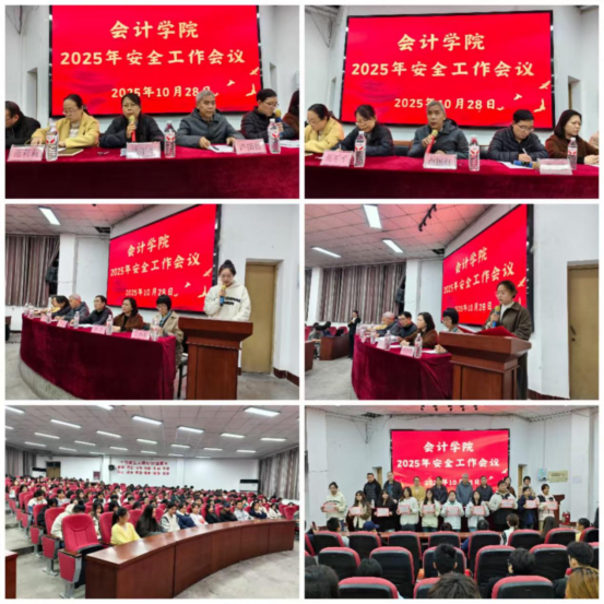 为加强校园安全管理,提升学生安全意识,进一步激发全体学生安全员的工作热情,2025年10月28日,会计学院组织300名学生安全员在北校区报告厅举行了2025年安全工作大会。