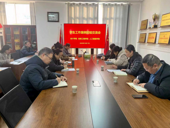 为加强队伍建设,提升育人实效,2025年12月17日,人工智能学院、信息工程学院、会计学院在人工智能学院会议室举办学生工作案例经验交流会,我院党总支书记岳军平带领全体学工人员参加。会上,范院长代表学院进行《导师领航启新程 立德树人结硕果》典型发言。本次会议紧扣新时代学生工作特点,围绕心理健康教育、突发事件处理等问题进行研讨,与会人员积极参与,深入交流,探索了学生工作的新方法与新路径,为未来更精准、有效地服务学生成长奠定了坚实基础。