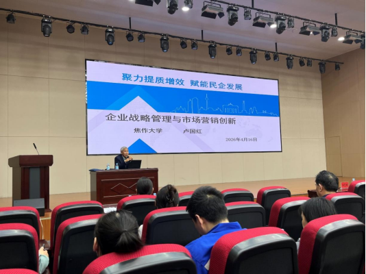 为服务地方经济发展,助力民营企业提质增效,2026年4月16日,焦作大学会计学院院长卢国红应中站区委统战部、焦作经济技术开发区管委会邀请,在爱尔福克化学股份有限公司会议室,为中站区工商联会员企业进行《企业战略管理与市场营销创新》专题培训,多氟多、佰利联、和兴化工等70余家重点企业负责人参加培训。